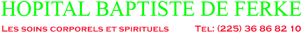 L’hôpital Baptiste a toujours travaillé avec des partenaires aussi bien sur le plan national qu’international. Ce sont des particuliers ou des organisations, croyants ou laïcs. Ils prient pour l’hôpital, donnent de l’argent ou du matériel mais peuvent aussi donner de leur temps et de leurs compétences. Que leur contribution soit ponctuelle ou étalée dans le temps, ils œuvrent tous à la réalisation de la mission de l’hôpital baptiste de Ferké.